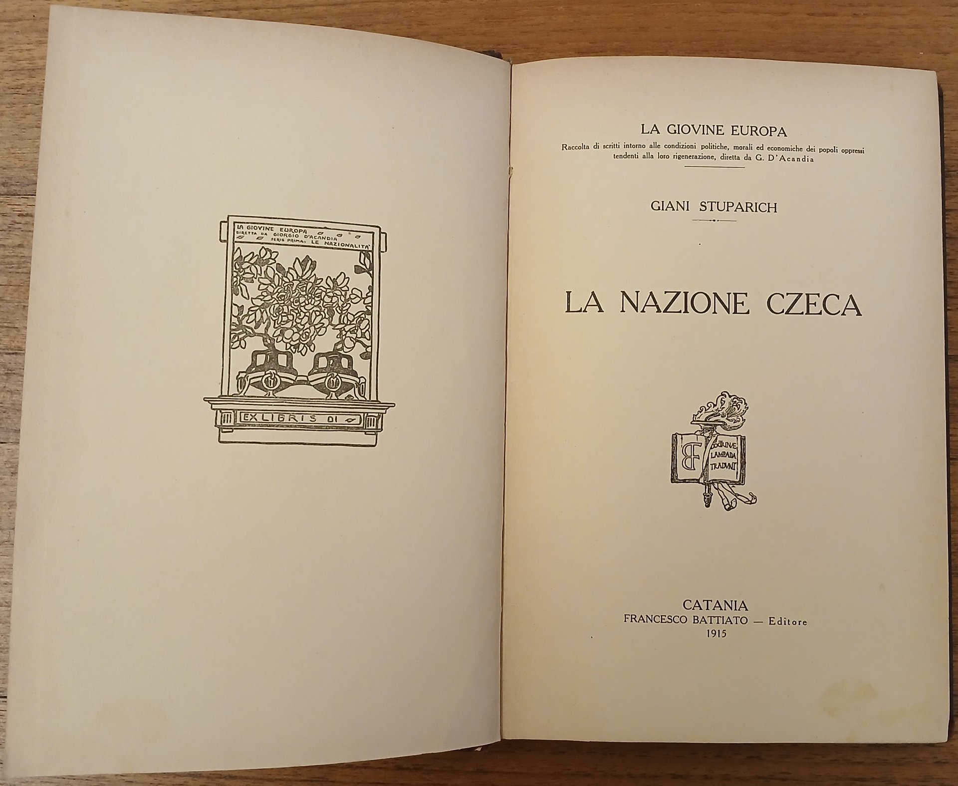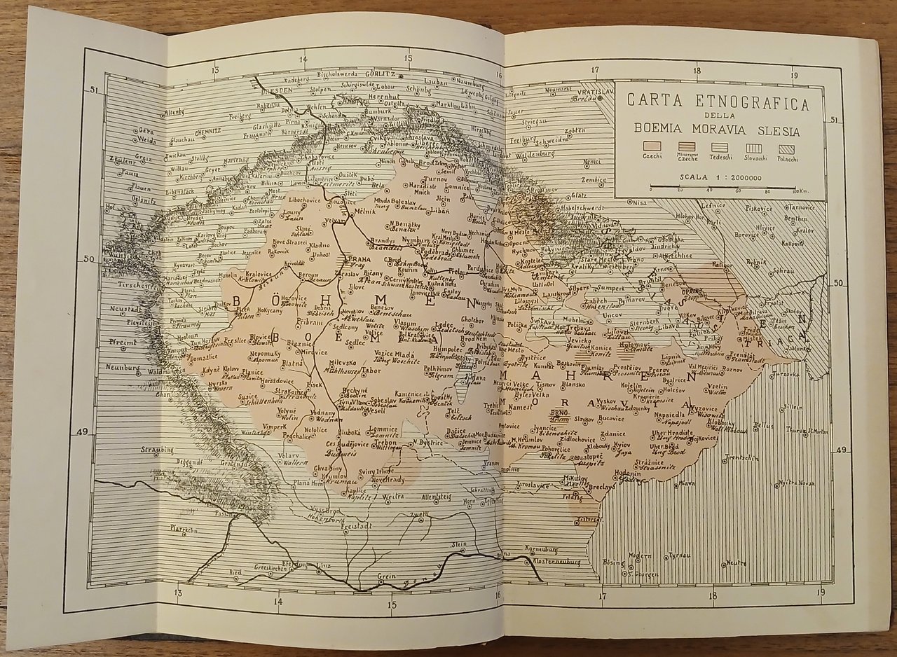 (Mitteleuropa; Europa centrale; Boemia; Storia; Novecento) In 8° (cm 20 x 13,5), legatura coeva in piena tela ocra scuro, al dorso titoli in argento, al piatto posteriore insegna a secco, pp. 133,(3), con una carta a colori ripiegata e a doppia pagina fuori testo (Carta etnografica della Boemia Moravia Slesia). Collana "La Giovane Europa" (Raccolta di scritti intorno alle condizioni politiche, morali ed economiche dei popoli oppressi tendenti alla loro rigenerazione) diretta da G. D' Acandia, pseudonimo di Umberto Zanotti Bianco. Prima edizione della prima opera pubblicata dallo scrittore triestino. La brossura originale non è stata conservata. Una data a timbro : "27 ott. 1918", al verso di pagina 133. Qualche segno del tempo alla legatura, peraltro ottimo stato di conservazione.