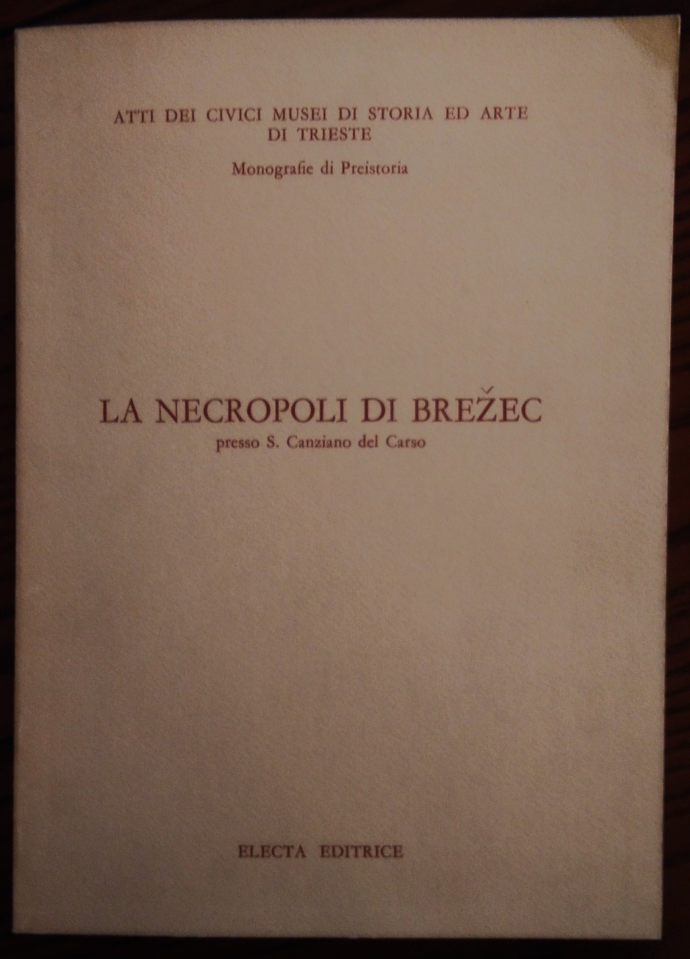 La necropoli di Brezec presso S. Canziano del Carso. Scavi Marchesetti 1896-1900 presentazione di :Laura Ruaro Loseri testi di: Giuliana Steffè De Piero, Serena Vitri catalogo a cura di: Giuliano Righi, Giuliana Steffè De Piero, Serena Vitri.