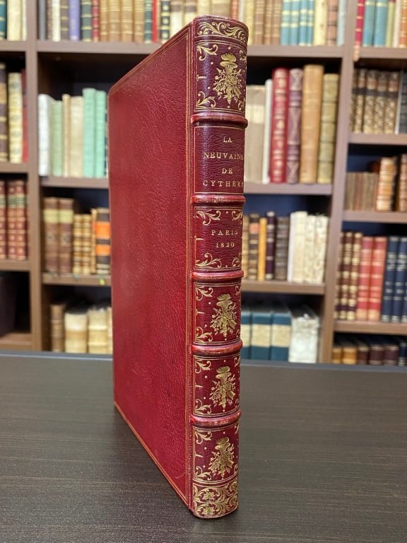 <span style="font-style: normal;">In-8° (cm. 21,2), splendida legatura di G. Hardy in pieno marocchino bordò con piatti inquadrati da cornice di triplice filetto in oro e dorso con titolo e fregi in oro ai comparti, tagli dorati, labbri con duplice filetti, </span><i>dentelles</i><span style="font-style: normal;"> ai rimbocchi e risguardi in carta marmorizzata (impercettibile usura alla cerniera); pp. [8] 153 in ottimo stato, </span><i>sur papier vélin</i>, con 42 tavole fuori testo (2 ritratti dell'autore, 2 all'antiporta, 32 illustrative all'acquaforte e altre 6 doppie con stato di incisione differente); antico appunto al primo foglio bianco che descrive la copia come «magnifique exemplaire». Prima edizione postuma del poema erotico, solitamente inserita nelle <i>Oeuvres posthumes</i> ma qui in tiratura speciale, a sé, finemente illustrata. «C'est une débauche d'esprit. L'abbé Morellet en possédait seul une copie, et il s'était gardé de la publier» [NBG XXIII, 906]. Superbo esemplare conservato in cofanetto marmorizzato con interno in velluto. (SC2)