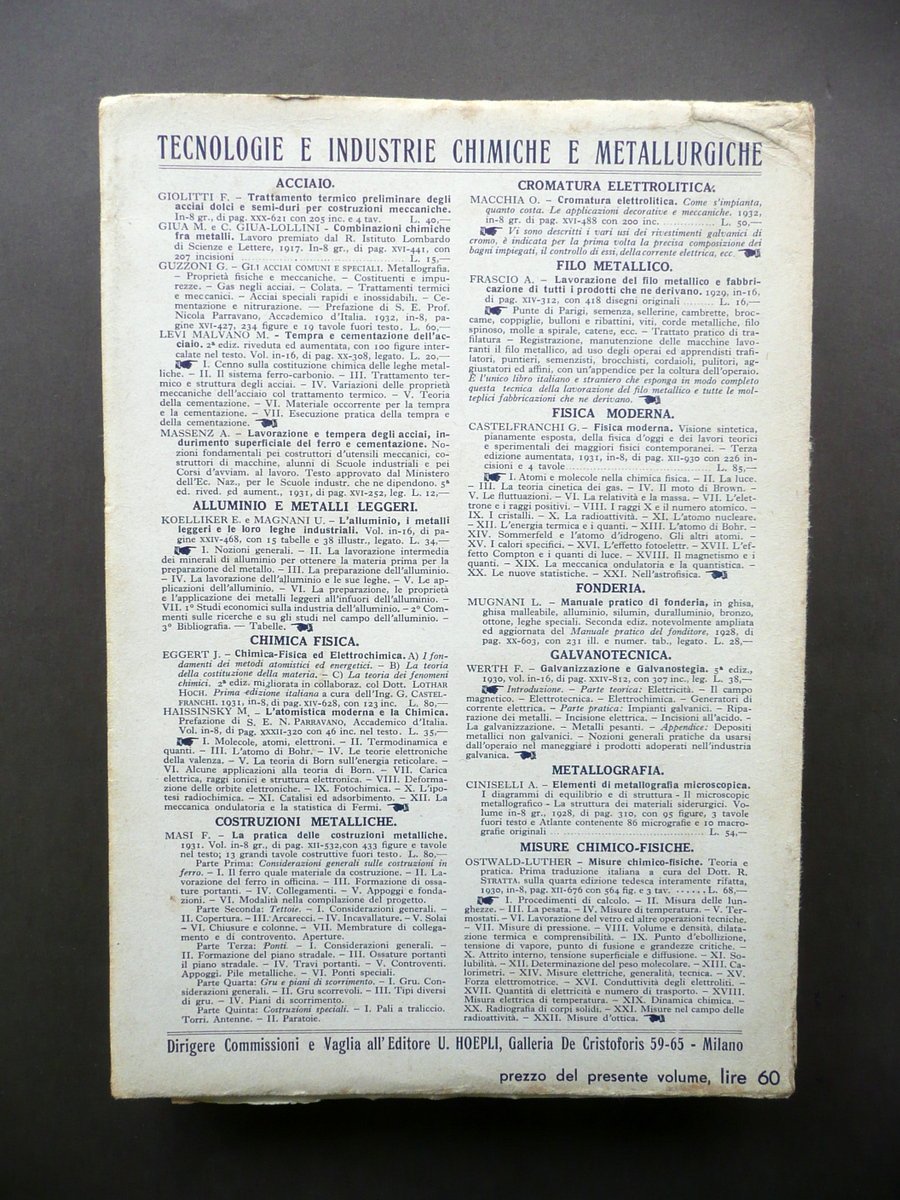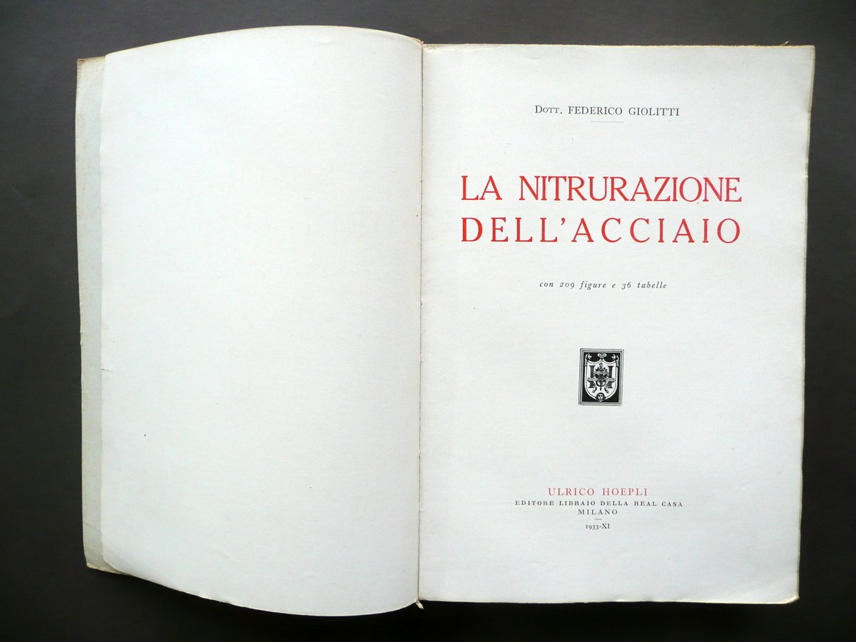 La Nitrurazione dell'Acciaio Federico Giolitti Hoepli Milano 1933 Chimica