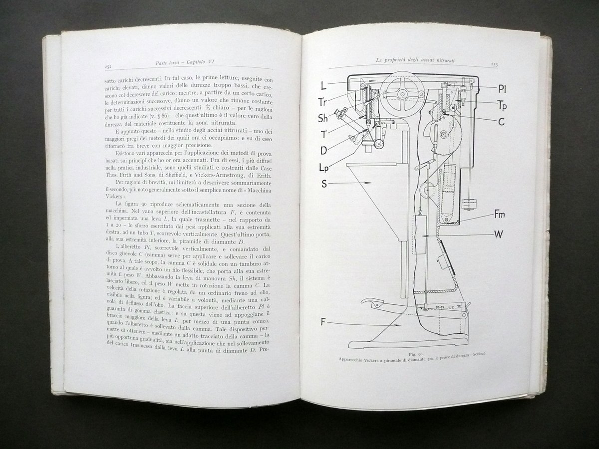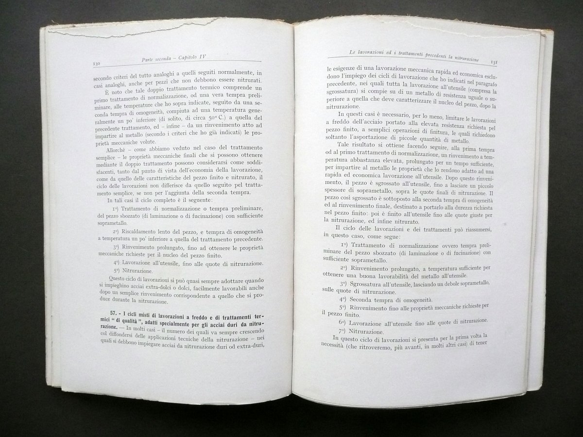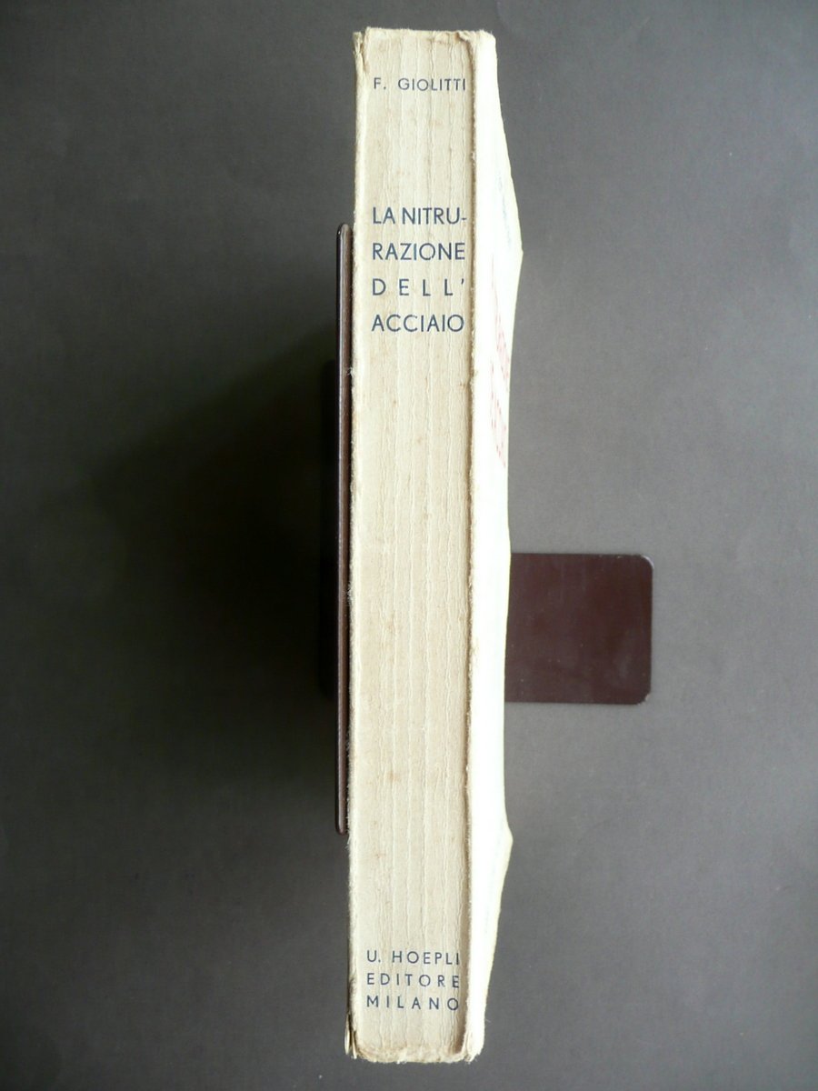Dott. Federico Giolitti, La Nitrurazione dell'Acciaio Con 209 figure e 36 tabelle Hoepli, Milano 1933, cm 24x16,5, pp. XVI; 452 con 209 fig. in b/n nel t. e fuori t., e con 36 tabelle; brossura ed. Condizioni di conservazione Esemplare in buone condizioni con tracce d'uso; brossure con alcune minime mancanze e pressoché trascurabili accenni di sporco; angoli della brossura ant. con leggerissime tracce di pieghette; dorso con lievi segni di utilizzo e minimi strappetti alle cuffie. Interni buoni; margine sup. di poche pagine con piccoli difetti provocati dall'apertura maldestra di esemplare intonso (vedi foto); margine inf. delle pp. 273-274 con pochi trascurabili strappetti e una minuscola mancanza. SETT112.L10760 N