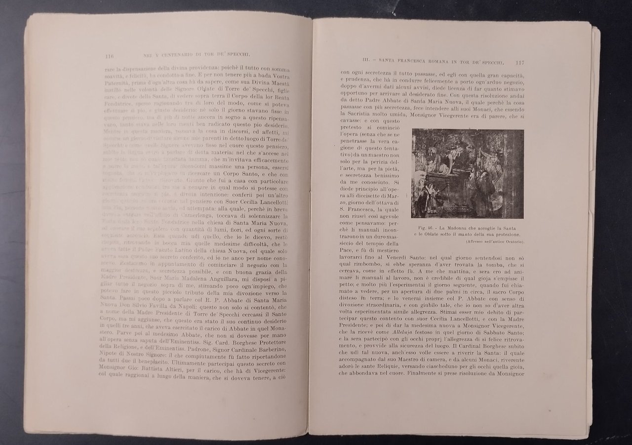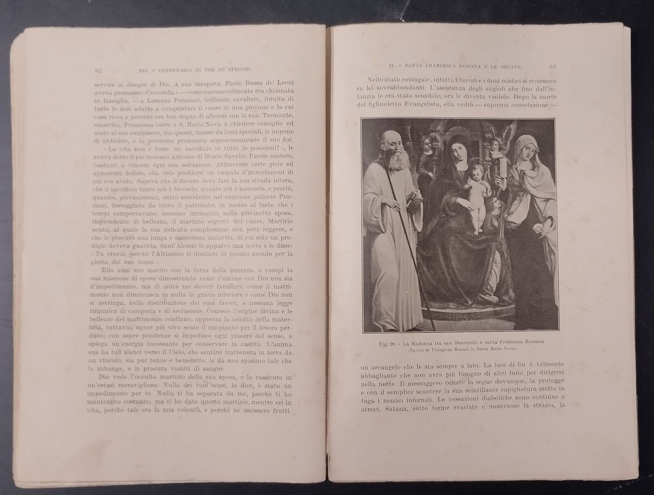 LA NOBIL CASA DELLE OBLATE DI SANTA FRANCESCA ROMANA IN TOR DE SPECCHI nel V centenario dalla fondazione (1433 - 1933). Tipografia Poliglotta Vaticana , 1933. 175 pagine, numerose illustrazioni in bianco e nero nel testo. Copertina editoriale in brossura. Stato di conservazione: buono (pagine ingiallite, copertina sciupata con dorso mancante, legatura allentata) Libro usato saggistica religione storia locale