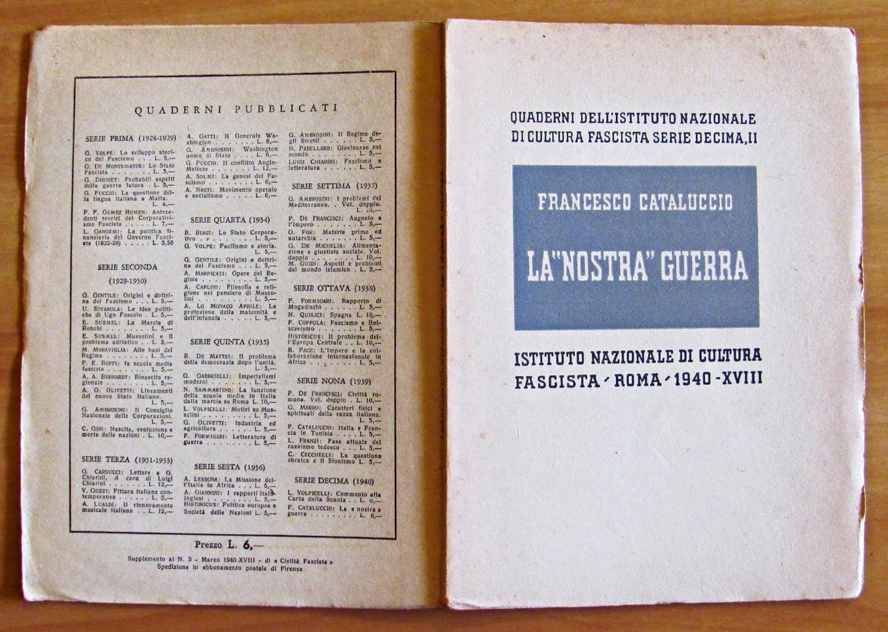 Quaderni dell'Istituto Nazionale di Cultura Fascista. Serie Decima, N.II - 1940. Brossura editoriale. 16,5x22,5; pp.47. Stato di Nuovo. , Ottimo (Fine)