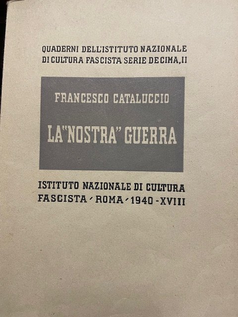 LA "NOSTRA GUERRA"., Quaderni dell' Istituto Nazionale di Cultura Fascista.