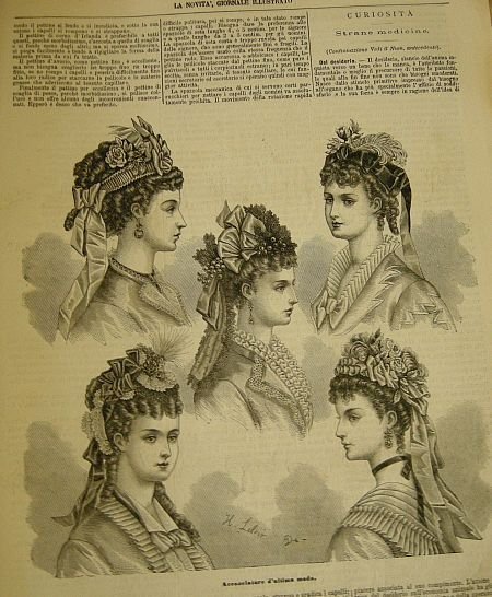 In 4? (cm 38,5), senza rilegatura, pagg.6 (da pag. 347 a pag. 352) con diverse ill.b.n. n.t. (relative ad abbigliamento ed accessori da donna; modelli per lavori di ricamo), rarissime lievi fioriture, brunitura al margine bianco, qualche strappetto al margne bianco, manca la prima carta, peraltro buon es. contiene la poesia "Se io fossi?" di A.G. Cagna (Vercelli, 1847-1931).