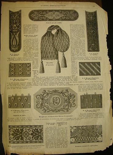In 4? (cm 38,5), senza rilegatura, pagg.4 (da pag. 401 a pag. 404) con diverse ill.b.n. n.t. (relative ad abbigliamento ed accessori da donna; modelli per lavori di ricamo e uncinetto), rarissime lievi fioriture, strappetti e mancanze al margine bianco, mancano le ultime due carte, peraltro buon es.