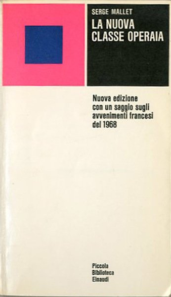 Nuova edizione. 236 p. ; 18 x 10 cm. Piccola biblioteca Einaudi. Alla luce degli avvenimenti del maggio '68, Serge Mallet propone una nuova edizione di questa sua inchiesta sociologica sulla classe operaia nel Secondo Novecento. Titolo originario dell'opera: "La nouvelle classe ouvriere". Traduzione di Goffredo Fofi. Brossura editoriale, coperta in cartoncino flessibile colorato (b/n, viola/blu), titolo al piatto e al dorso. Timbro ex libris nel front. per il resto esemplare in buone condizioni. Codice libreria 3978.