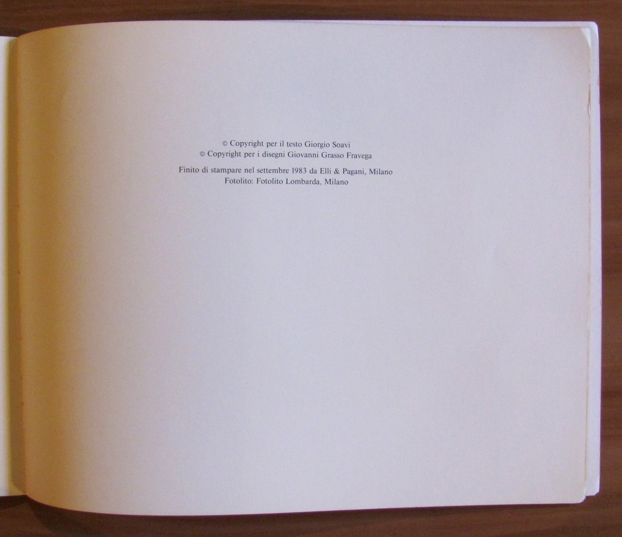 16 illustrazioni a colori n.t. e f.t. di Giovanni Grasso Fravega. Edizioni Emme - Milano, 1983. Brossura editoriale con minime tracce di polvere alle copertine. 35x28; pp.42 non numerate. Ottimo stato. , Ottimo (Fine)