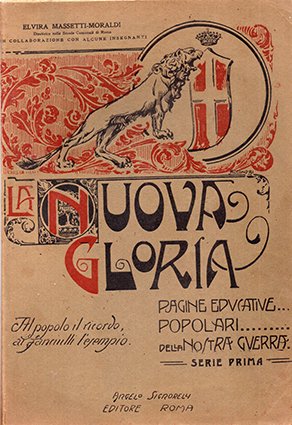 Pagine educative… popolari … della Nostra guerra. Serie prima. Al popolo il ricordo, ai fanciulli l'esempio. Timbro e firma di appartenenza all'antiporta