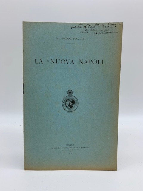 In 8, cm 15 x 23, pp. 10 con illustrazioni fotografiche. Brossura editoriale. Invio autografo dell'autore e biglietto da visita. Estratto editoriale dal Bollettino della societa' geografica italiana. Relazione sulla costruzione di questa citta' per italiani nello stato del New Jersey da parte di Giuseppe Scalona.