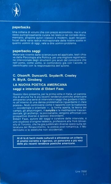 Titolo: La nuova poetica americana: interviste e saggi di Ekbert Faas. Una nuova visione dell'arte, un panorama a più voci delle più recenti tendenze della poesia in America.
