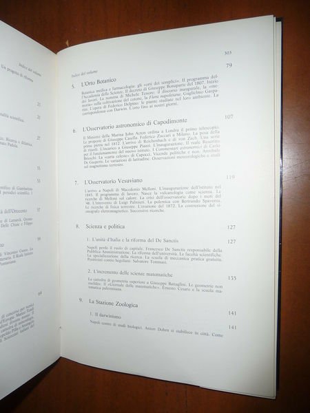 DESCRIZIONE: Ed. Laterza, Bari, 1986, in 8°, br. ed. grigia con sovracc. ill. a col., pp. 305 con 96 tav. b/n n.t. e 83 tav. a col. n.t. La prima ricostruzione storica della ricerca scientifica a Napoli e della sua diffusione nella circolazione delle idee: dalla riforma universitaria alla Stazione Zoologica, dal Museo Mineralogico alla nascita della vulcanologia, dalle fabbriche di seta e di cotone alla prima ferrovia in Italia. Indice completo in foto. CONDIZIONI: Ottime. Dalla pagina 290 in poi è presente un difetto di rilegatura con vistosa piega delle pagine. Ex-libris con bollo e timbro al frontespizio. PESO / WEIGHT: 870 gr. without package