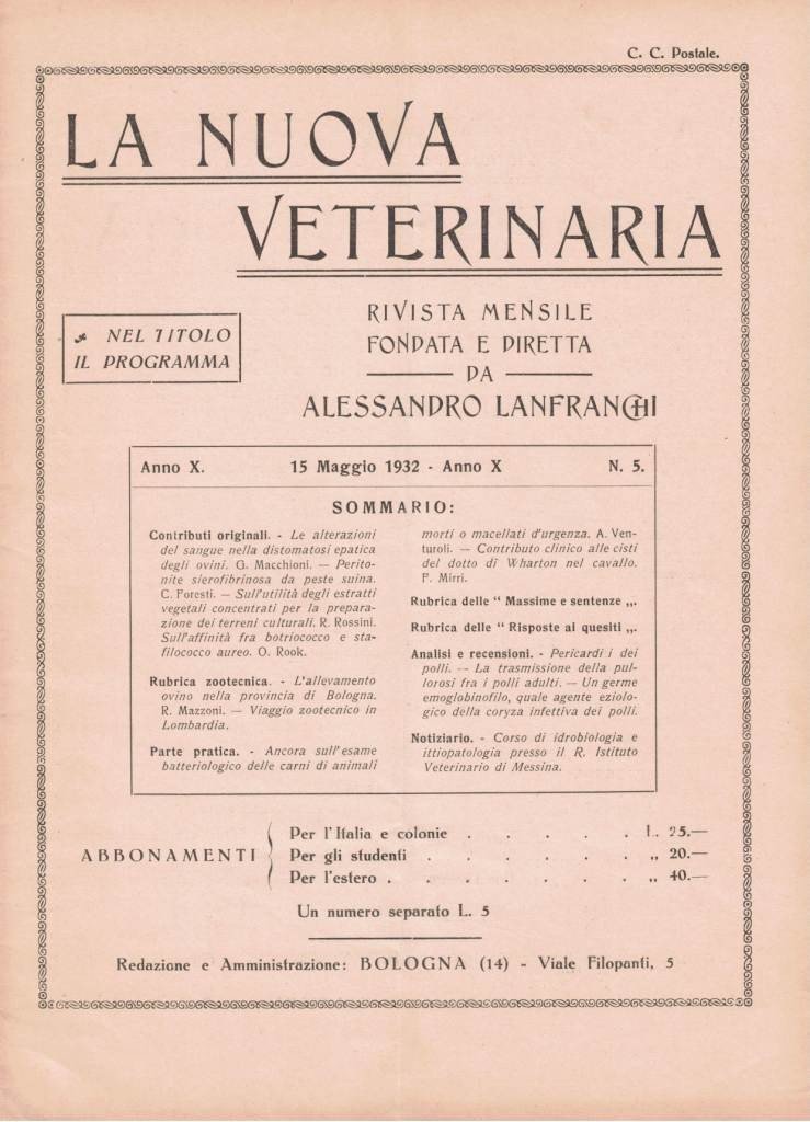 La nuova veterinaria. Rivista mensile, a. X, n. 5, 15 maggio 1932