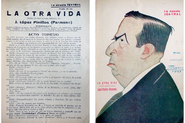 Madrid, La Novela Teatral, 1923. 4to.; 32 pp. sin numerar. Cubiertas originales de Tovar.