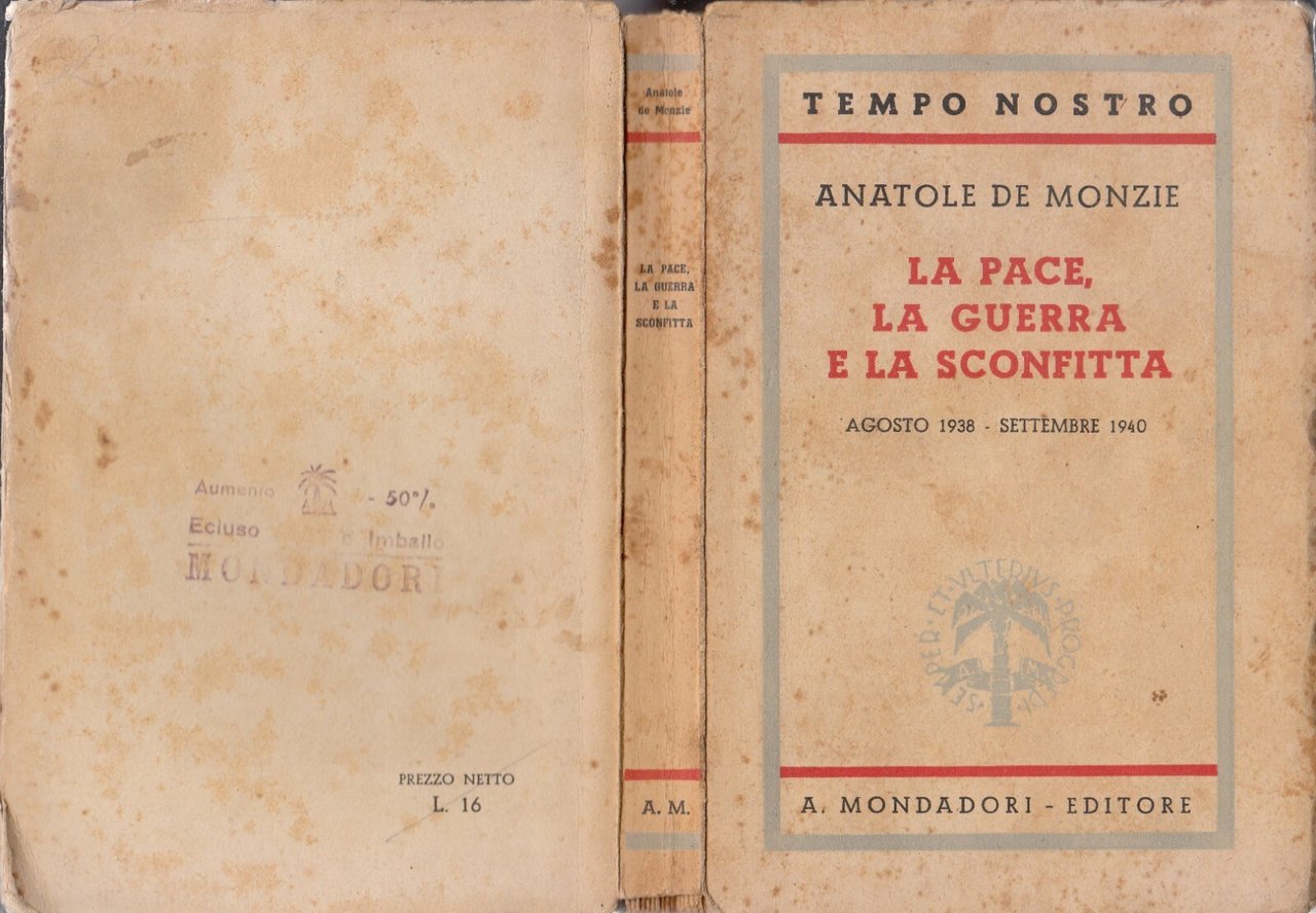 LA PACE GUERRA E SCONFITTA agosto 1938 settembre 1940 di Anatole De Monzie Libro
