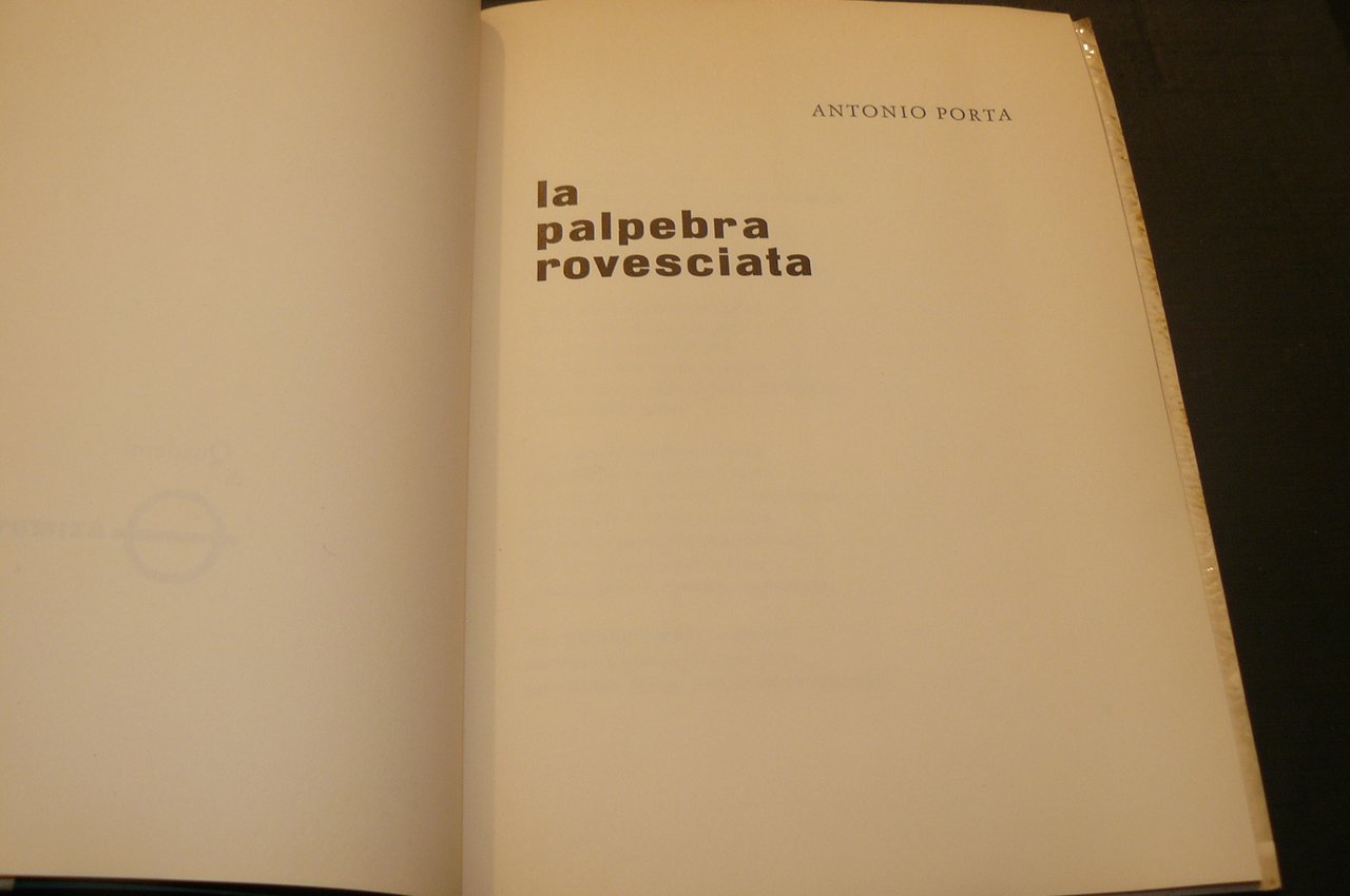In-8°, pp. 41, (3), brossura editoriale con alette illustrata da Carlo Ramous, sovracc. in acetato. PRIMA edizione del primo libro con lo pseudonimo 'A. Porta' di Paolazzi Leo. Buon esemplare. Porta, Antonio. - Pseudonimo del poeta Leo Paolazzi (Vicenza 1935 - Roma 1989). Attivo nell'editoria, redattore di riviste (Il Verri, Quindici) legate all'area della neoavanguardia e membro del Gruppo 63, fu presto noto come uno dei novissimi, inclusi da A. Giuliani nell'antologia omonima (1961). La sua poesia, distintasi per l'iniziale oltranza innovatrice (La palpebra rovesciata, 1960; Zero, 1963, poesie visive; Aprire, 1964; I rapporti, 1965; Cara, 1969; Metropolis, 1971; Week-end, 1974: raccolte confluite con inediti in Quanto ho da dirvi. Poesie 1958-1975, 1977), si è poi orientata verso toni più affabilmente comunicativi: Passi passaggi (1980); Invasioni (1984); Melusina (1987); Il giardiniere contro il becchino (1988). Nel 1985 egli stesso offrì una ricostruzione del suo percorso poetico con il volume antologico Nel fare poesia (1958-1985). La sua attività creativa si estese anche alla narrativa (Partita, 1967; Il re del magazzino, 1978) e al teatro (La presa di potere di Ivan lo sciocco, 1974). Fu tra i fondatori della rivista Alfabeta (1979-88) e curò l'antologia Poesia italiana degli anni Settanta (1979). Postuma è apparsa una raccolta di suoi interventi sulla poesia (Il progetto infinito, 1991). Treccani. Gambetti-Vezzosi p. 365.