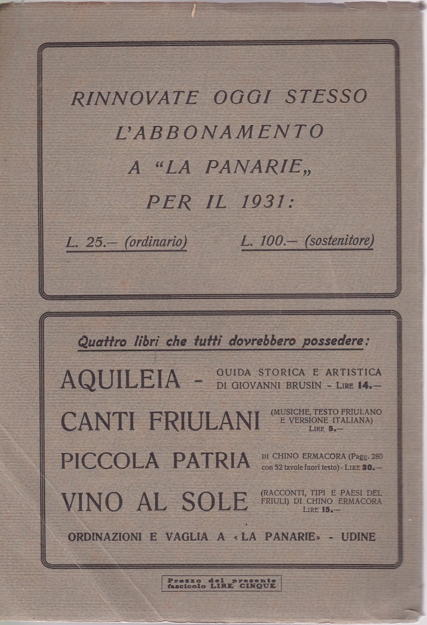 "La Panarie" Anno VII n° 42. Novembre - Dicembre 1930