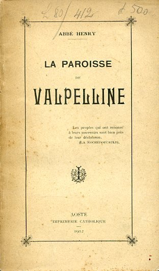 In-16° (18x10 cm), pp. 88, (2), brossura editoriale riquadrata con titoli al piatto. Illustrazioni fotografiche n.t. e f.t. Ottimo esemplare. Edizione originale. Memorie di storia ecclesiastica comprensive di un'agiografia di San Pantaleone, patrono della parrocchia di Valpelline.