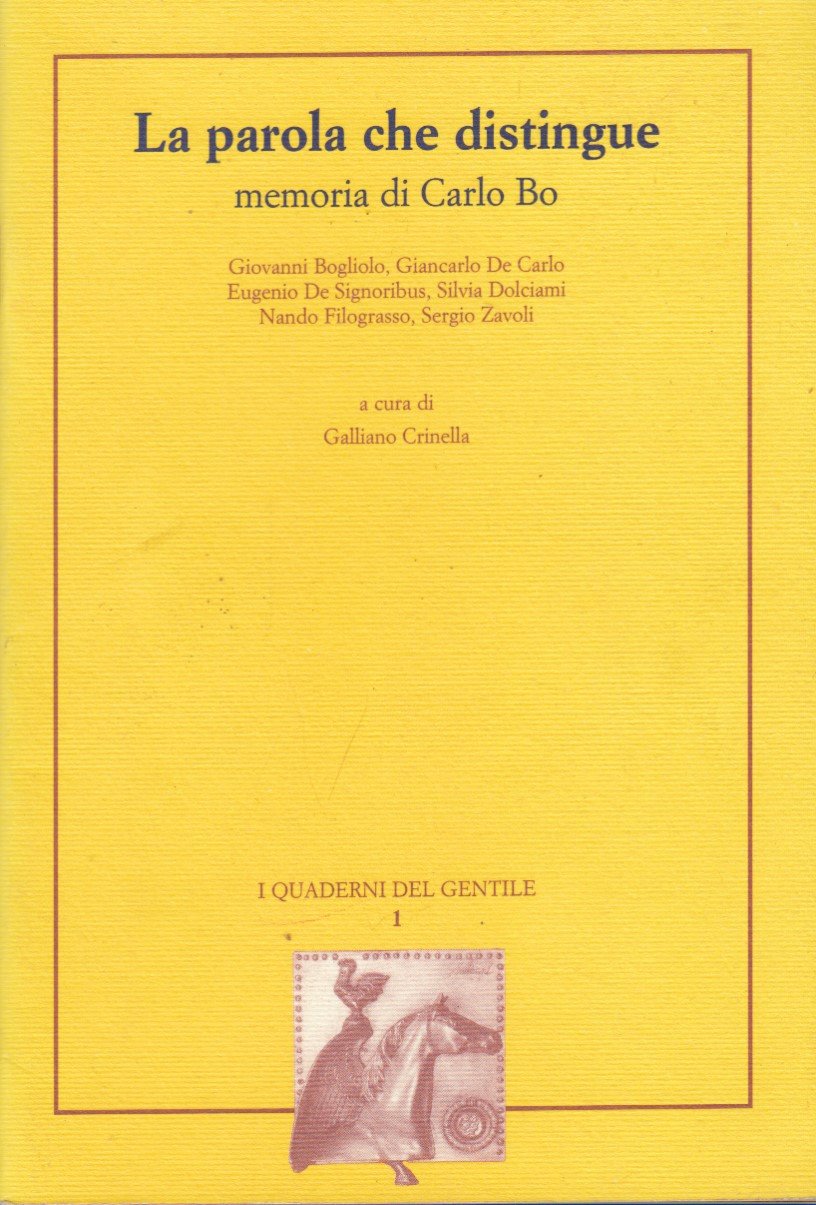 In-8 (Cm 20,5 x 14), pp. 33, brossura editoriale. Collana I Quaderni del Gentile, 1. Testi di Giovanni Bogliolo, Giancarlo De Carlo, Eugenio De Signoribus, Silvia Dolciami, Nando Filograsso, Sergio Zavoli. COME NUOVO