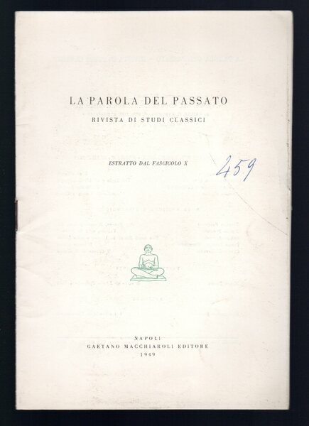 Opuscolo vintage. Rivista di studi classici, estratto dal fascicolo X. Segno di biro in copertina e rari all'interno. Ordinario segno del tempo. Usura da scaffale.
