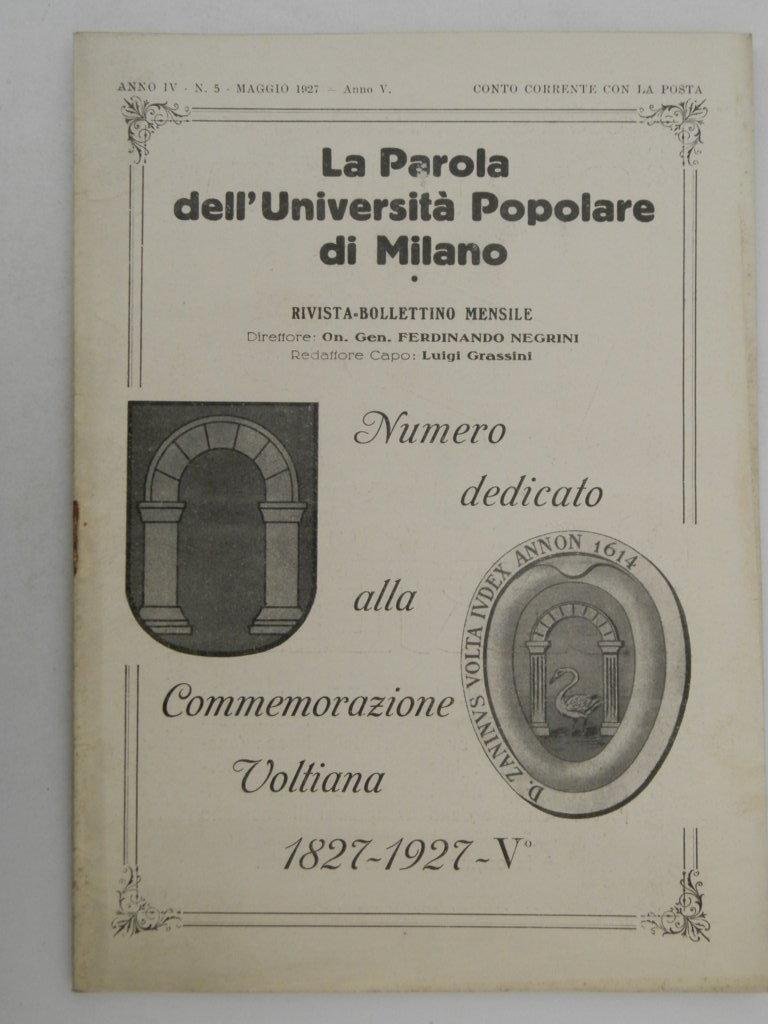 La Parola dell'Università Popolare di Milano. Numero dedicato alla Commemorazione voltiana. 1827-1927