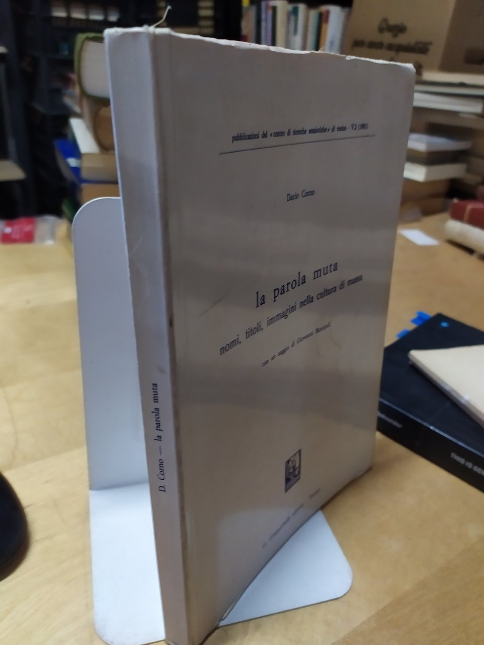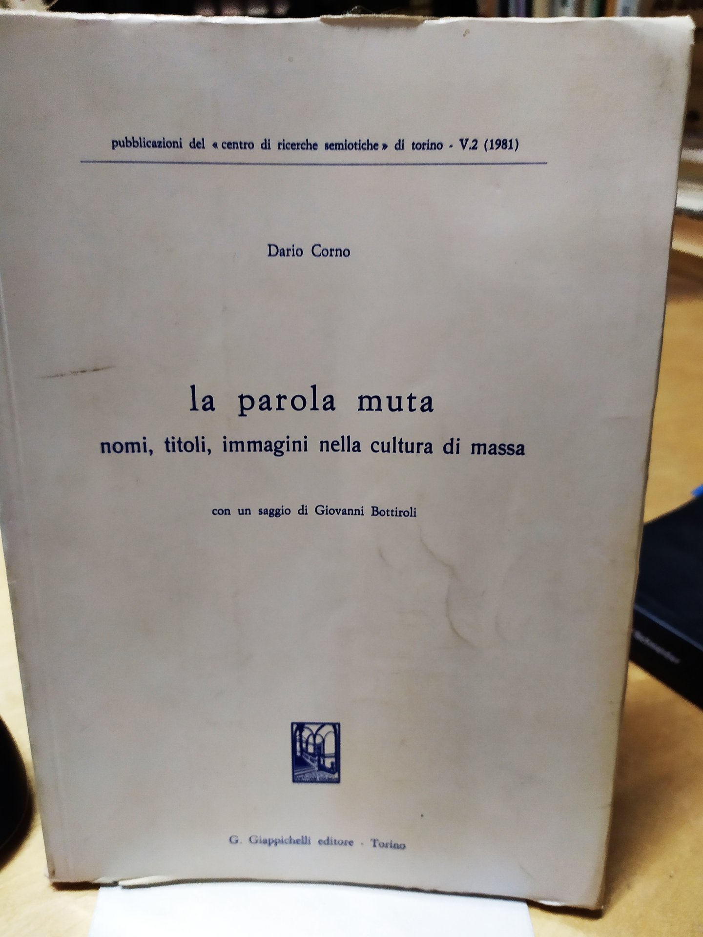 la parola muta nomi titoli immagini nella cultura di massa con un saggio di giovanni bottiroli. Torino, g.giappichelli 1981 italiano, pp.170 -^^