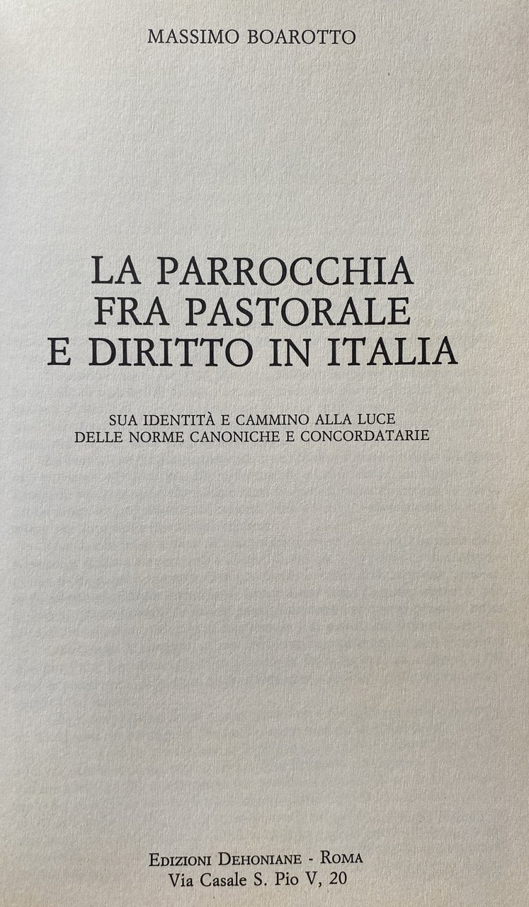 Titolo: La parrocchia fra pastorale e diritto in Italia: sua identità e cammino alla luce delle norme canoniche e concordatarie