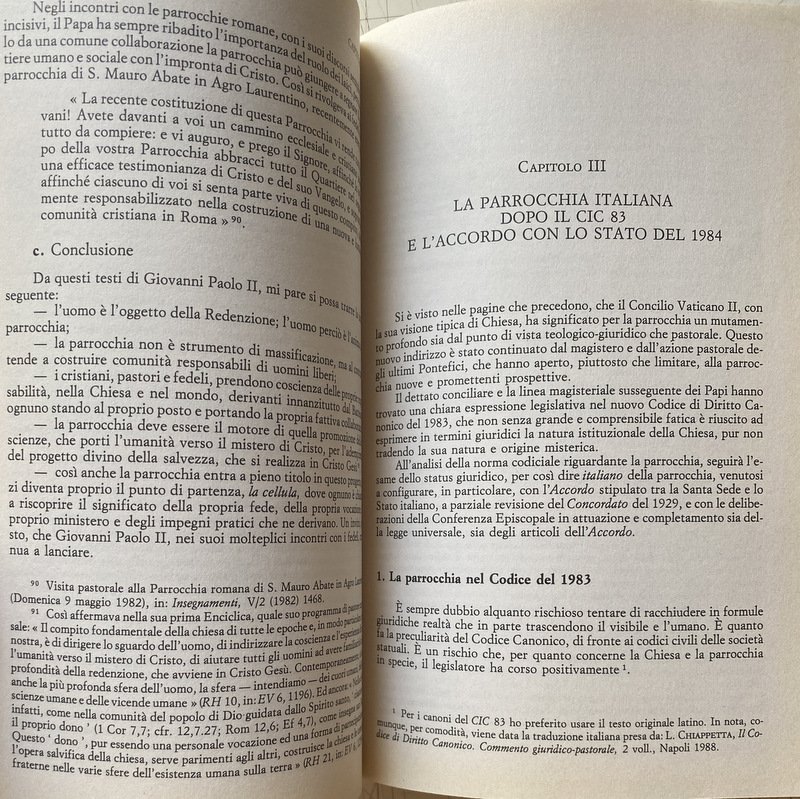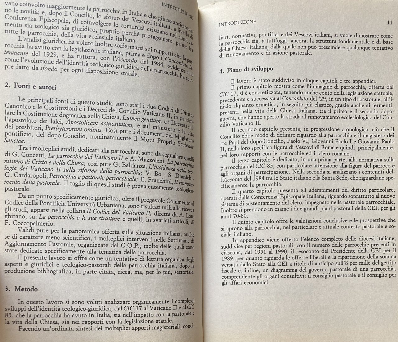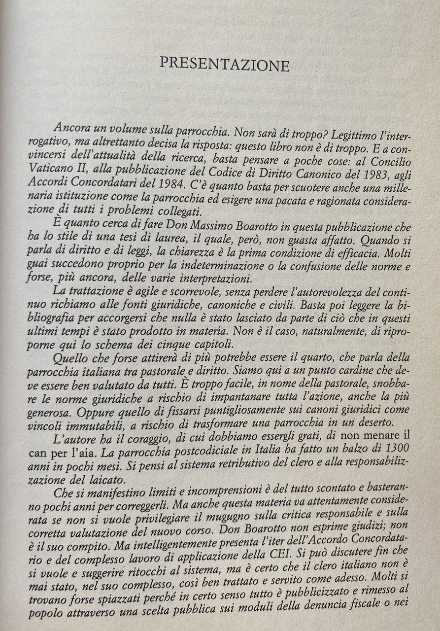 Soggetti: Diritto canonico, Chiesa, Parrocchie, Enti ecclesiastici, Giurisprudenza, Norme, Regole, Diocesi, Clero, Stato, Diritto ecclesiastico, Codice, Normativa canonica, Codex iuris canonici, Collegialità episcopale, Institutiones, Commento giuridico, teologico, pastorale, Personalità giuridica, Decreti, Vescovo, Parroco, Matrimonio, CEI, Interpretazione, Laicato, Bibliografia, Riferimento, Fonti, Studi giuridici, Concordato, Lumen Gentium, Concilio Vaticano II, Apostolato, Laici, Apostolicam actuositatem, Presbyterorurm ordinis, Ecclesiae Sanctae, Gino Concetti, Angelo Mazzoleni, G. Baldanza, Vincenzo Bo, Severino Dianich, Gerardo Cardaropoli, E. Franchini, Francesco Coccopalmerio, Pontificia Università Urbaniana, CIC 17, 83, Tasse, 8 per mille, Elenco, Diocesi Italiane, Fisco, Gettito, Economia, Marcello Morgante, Sosio D'Angelo, Giovanni Paolo II, Enchiridion, Liturgia, Beni temporali, Accordi concordatari, Santa Sede, Yves M.J. Congar, Giuseppe Dalla Torre, V. Del Giudice, Enzo Franchini, António Domingues de Sousa Costa, Cesare Bonicelli, Questione romana, Leggi, Primo Mazzolari, Lorenzo Milani, Arturo Carlo Jemolo, Storia, Azione Cattolica, Henri De Lubac, Eglise, Karl Rahner, Giorgio Feliciani, Giuseppe Brunetta, Rapporti, Diplomazia, Papa, Teologia, M. Calvi, Jean-Claude Périsset, M. Marchesi, Luigi Mistò, T. Mauro, Scuola, Carlo Roberto Maria Redaelli, Consiglio pastorale parrocchiale, Amministratore parrocchiale, Giuspatronato, Sacrestano, Oratorio, Cristianesimo, Dottrina Sociale, Nomina, Costituzione, Patti Lateranensi, Paolo VI, Magistero, Vacanza, Rimozione, Diocesi, Elezione, Vicario, Affari economici, Edifici di culto, Sostentamento, Durata, Sacramenti, Comunità, Battesimo, Battezzati, Fede, Evangelizzazione, Catechesi, Catechismo, 1983, Decadenza, Ufficio, Eucaristia, Ordinamento, Lettera enciclica, Magistero, Ecclesiologia, Canonistica, Jean-Pierre Schouppe, Oratorio, Rito romano, Libri rari Vintage fuori catalogo, Saggistica, Insegnamenti, Attività missionaria, Magistero, Ad Gentes, COP, Orientamenti, Registri, Carità, Governo, Consiglio, Membri, Religiosi, Cooptazione, Rinnovamento, De paroeciis, Congregazione, Albino Luciani, Celebrazione, Patrimoniale, Donazioni, Atti, Autonomia, Messa, Ministero, Diacono, Requisiti, Confessione, Potestà amministrativa, Associazioni pubbliche di fedeli, Confraternita, Privilegi, Rerum novarum, 1929, Episcopato, Conferenza, Libertà, Autorità, Disposizioni, Istituzioni, Sinodo, Corresponsabilità ecclesiale, Legislazione, Santo Padre, Droit canonique, Canon law, Church, Parishes, Ecclesiastical bodies, Jurisprudence, Norms, Rules, Diocese, Clergy, State, Ecclesiastical law, Code, Canonical legislation, Episcopal Collegiality, Institutiones, Legal, theological, pastoral commentary, Legal personality, Decrees, Bishop, Parish priest, Marriage, Interpretation, Laity, Bibliography, Reference, Sources, Legal studies, Concordat, Second Vatican Council, Apostolate, Laity, Taxes, List, Italian Dioceses, Taxation, Revenue, Economy, John Paul II, Enchiridion, Liturgy, Temporal goods, Concordat agreements, Holy See, Roman question, Laws, History, Catholic Action, Relations, Diplomacy, Pope, Theology, School, Parish pastoral council, Parish administrator, Giuspatronato, Sacristan, Oratory, Christianity, Social Doctrine, Appointment, Constitution, Lateran Pacts, Paul VI, Magisterium, Vacation, Removal, Election, Vicar, Economic affairs, Places of worship, Support, Duration, Sacraments, Community, Baptism, Baptized, Faith, Evangelization, Catechesis, Catechism, Decadence, Office, Eucharist, Ordination, Encyclical letter, Magisterium, Ecclesiology, Canon law, Oratory, Roman rite, Rare books out of print, Non-fiction, Teachings, Missionary activity, Magisterium, Orientations, Registers, Charity, Government, Council, Members, Religious, Cooptation, Renewal, Congregation, Celebration, Property, Donations, Acts, Autonomy, Ministry, Deacon, Requirements, Confession, Administrative power, Public associations of the faithful, Confraternity, Privileges, Episcopate, Conference, Freedom, Authority, Provisions, Institutions, Synod, Ecclesial co-responsibility, Legislation, Holy Father