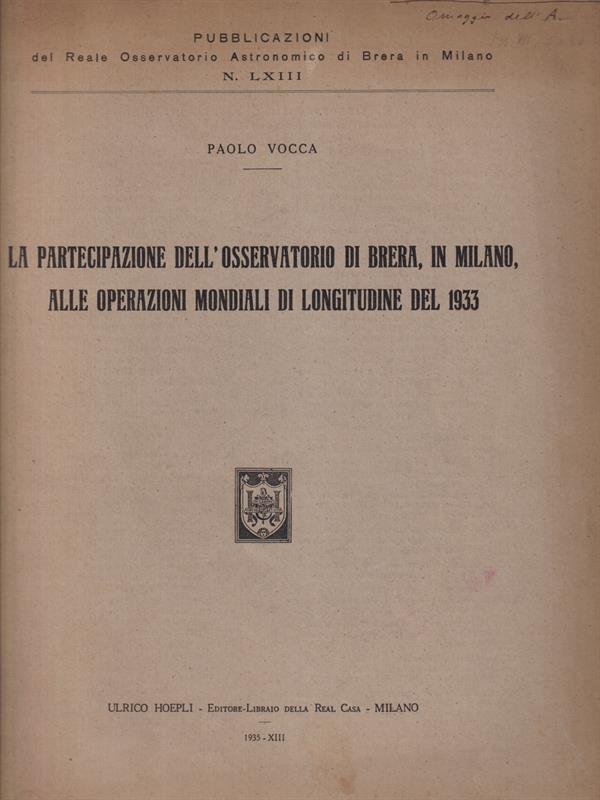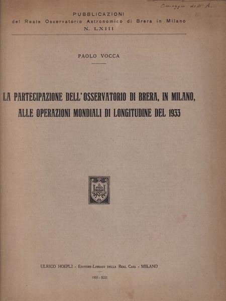 La partecipazione dell'osservatorio di Brera in Milano alle operazioni mondiali di longitudine del 1933 pubblicazioni N. LXIII