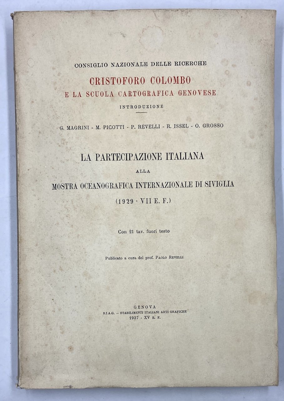 Brossura, cm21x29, pp CCXV (5), 21 tavole fuori testo di cui due più volte ripiegate in fine. Si tratta del solo volume introduttivo all’opera in tre volumi dedicata a Cristoforo Colombo e la scuola cartografica genovese.