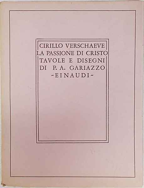 In 4° (cm. 32,5 x 24,5); pagg. 46, (2); con 14 tavv. illustr. da P.A. Gariazzo e protette da veline f.t.; leggera cartonatura origin. Minuscole tracce di adesivo all'interno della copertina, ma ottimo. VG. ** Stampato su carta Ingres colorata rosa delle Cartiere Miliani di Fabriano. Edizione di 1000 esemplari numerati. Questo è il n. 881.