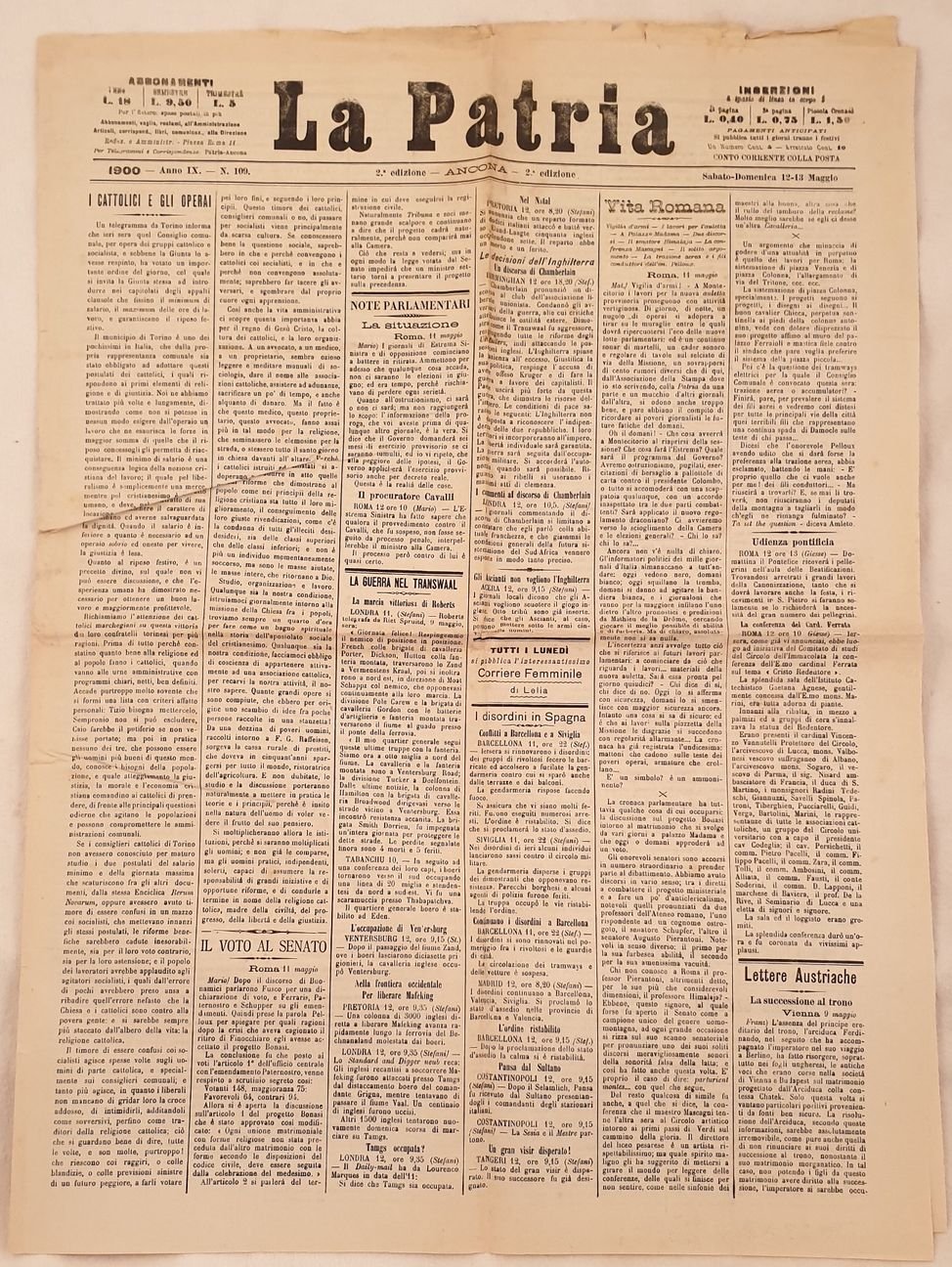 LA PATRIA 1900 - ANNO IX - N. 109 - 2 EDIZIONE ANCONA SABATO DOMENICA 12 13 MAGGIO
