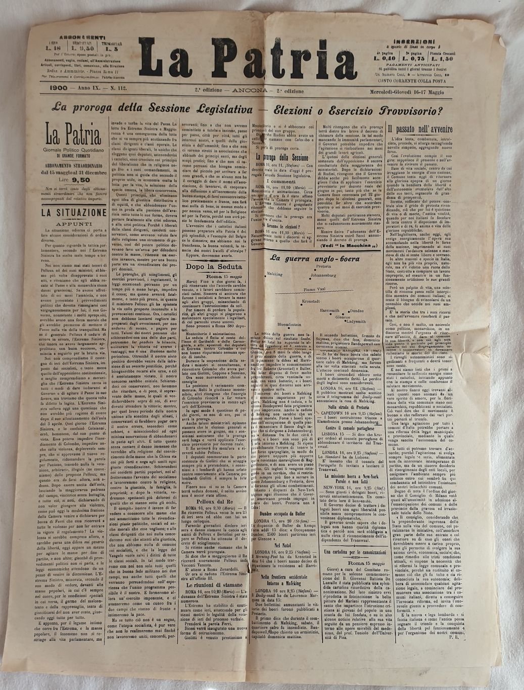 LA PATRIA 1900 - ANNO IX - N. 112 - 2 EDIZIONE ANCONA MERCOLEDI GIOVEDI 16 17 MAGGIO