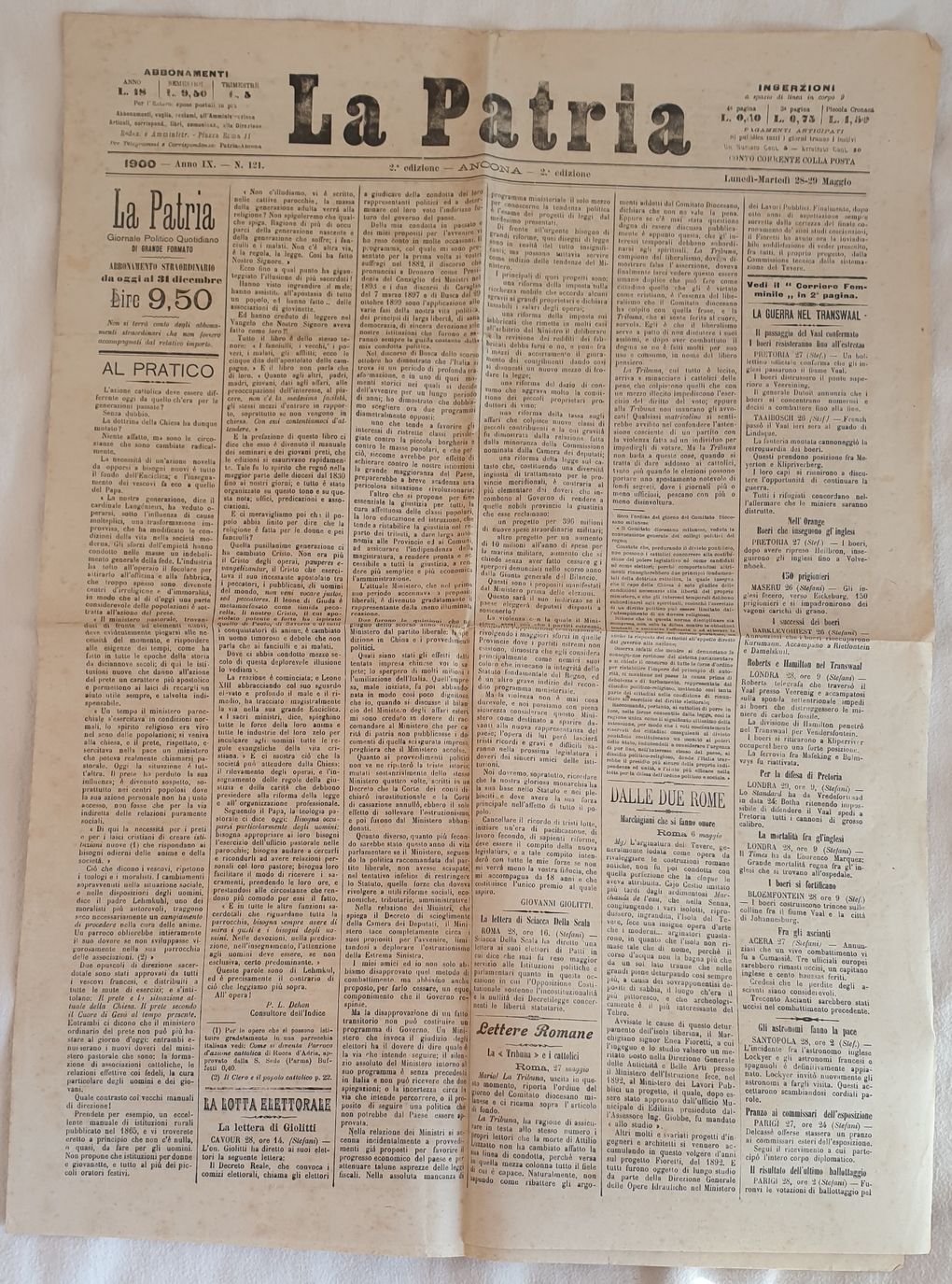 LA PATRIA 1900 - ANNO IX - N. 121 - 2 EDIZIONE ANCONA LUNEDI MARTEDI 28 29 MAGGIO