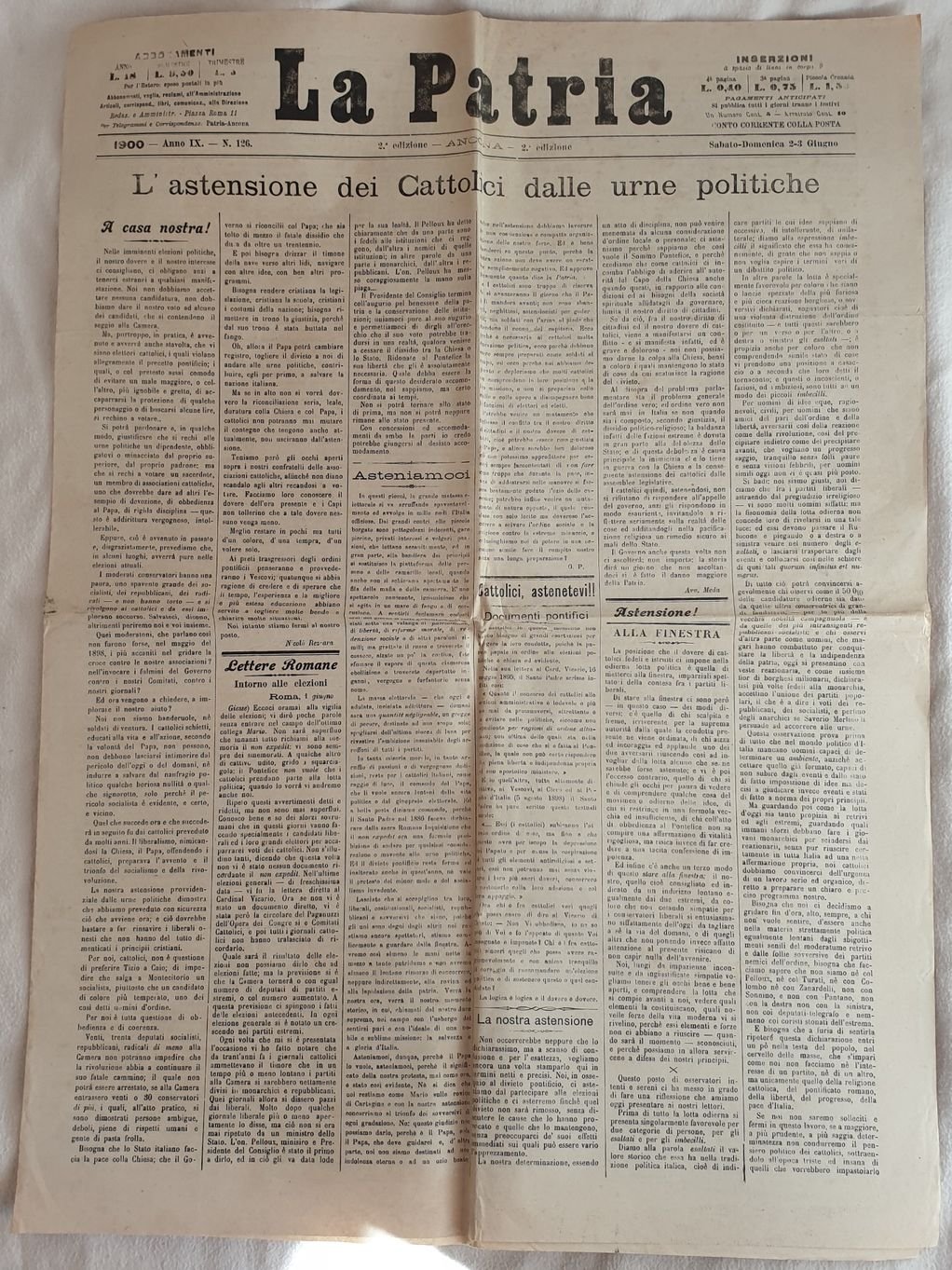 LA PATRIA 1900 - ANNO IX - N. 126 - 2 EDIZIONE ANCONA SABATO DOMENICA 2 3 GIUGNO