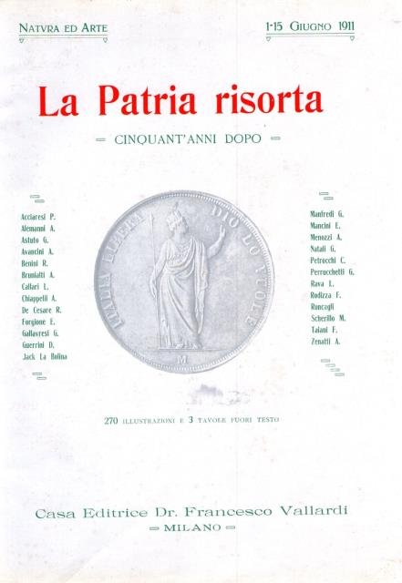 Casa Editrice Dr. Francesco Vallardi, Milano, 1 – 15 giugno, 1911. In 4to, pp. 230, testate decorate e illustrate, ill. in b/n n. t., bross. edit. in carta con titoli e ill. al piatto. Usuali difetti del tempo con difetti della carta al dorso ma buona conservazione dell’interno.