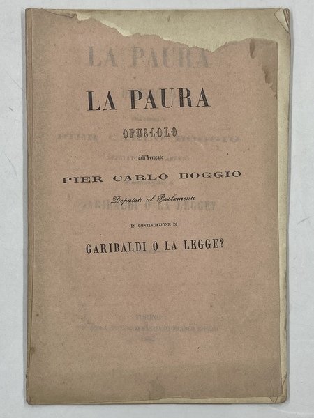 LA PAURA. Opuscolo dell’Avvocato Pier Carlo Boggio Deputato al Parlamento in continuazione di Garibaldi o la Legge?