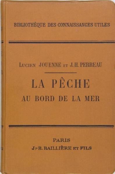 Baillière et Fils, “bibliothèque des connaissances utiles”, Paris, 1912. In/12 percaline havane éditeur, 101 figures en noir dans le texte (photos et gravures), 311 p. La mer (mouvements, vie, aspect de nos côtes, sémaphores), la pêche en grève, la pêche de rocher, en bateau le long des côtes, dans les estuaires, dans les ports, à la mouche au bord de la mer, les poissons que l’on prend le plus communément sur nos côtes, législation de la pêche au bord de la mer, dernier chapitre consacré à la chasse au bord de la mer.