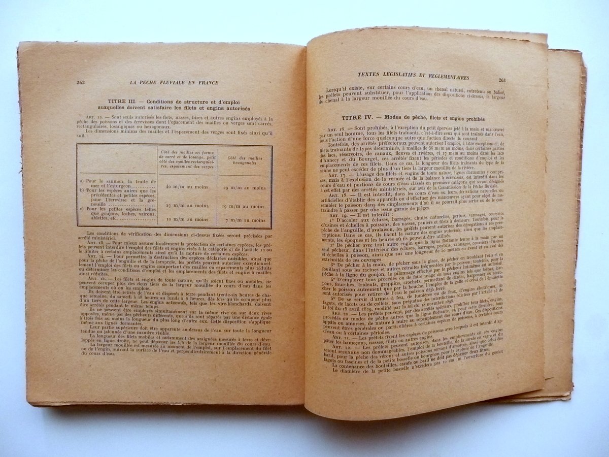 L. De Boisset & R. Vibert, La Peche Fluviale En France Son etat Son avenir Librairie des Champs Elysees, Paris 1944, cm 23,5x19, pp. 280; brossura ed. Testo in francese. Condizioni di conservazione Esemplare complessivamente ben conservato con tracce d'uso, brossure con alcune minime bruniture e qualche piccolo lieve alone; margini con pochi minimi strappetti; angoli con lievi tracce di pieghe e una piccola mancanza. Interni ingialliti a causa del tipo di carta; pp. 271-272 con un piccolo strappetto che non compromette la lettura del testo alla parte inf. Testo in francese. SETT112.L10704 N