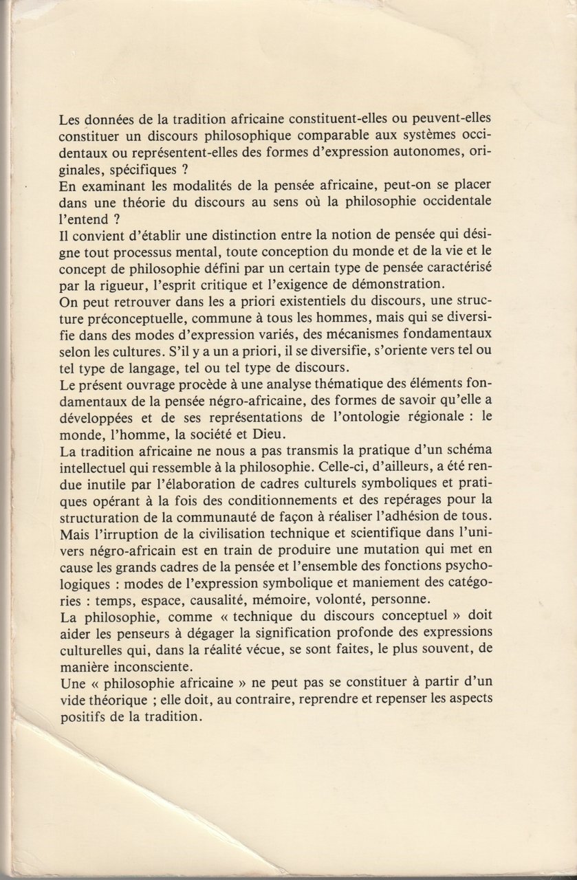La Pensée Africaine. Recherches sur les fondements de la pensée négro-africaine. Préface de Léopold Sedar Senghor