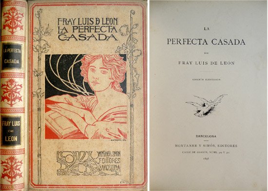Barcelona, Montaner y Simón Editores, 1898. 4to.mayor; 252 pp., con ilustraciones entre el texto, y 8 láminas aparte, en color, obra del pintor sevillano-gibraltareño Gustavo Bacarisas y que giran en torno al tema "Fases de la Vida de la Mujer". Encuadernación original en medio pergamino y tela estampada con motivos modernistas, diseñada por Alejandro de Riquer.