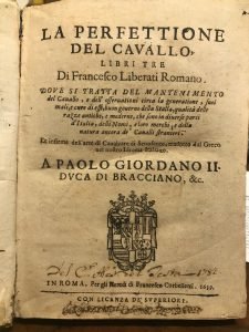 LA PERFETTIONE DEL CAVALLO, LIBRI TRE. Dove si tratta del mantenimento del cavallo, e dell’osservationi circa la generatione, suoi mali, e cure di essi, buon governo della Stalla, qualità delle razze antiche, e moderne, che sono in diverse parti d’Italia, delli Nomi, e loro merchi, e della natura ancora de’ cavalli stranieri. Et insieme dell’arte di Cavalcare di Senofonte, tradotto dal greco nel nostro Idioma Italiano