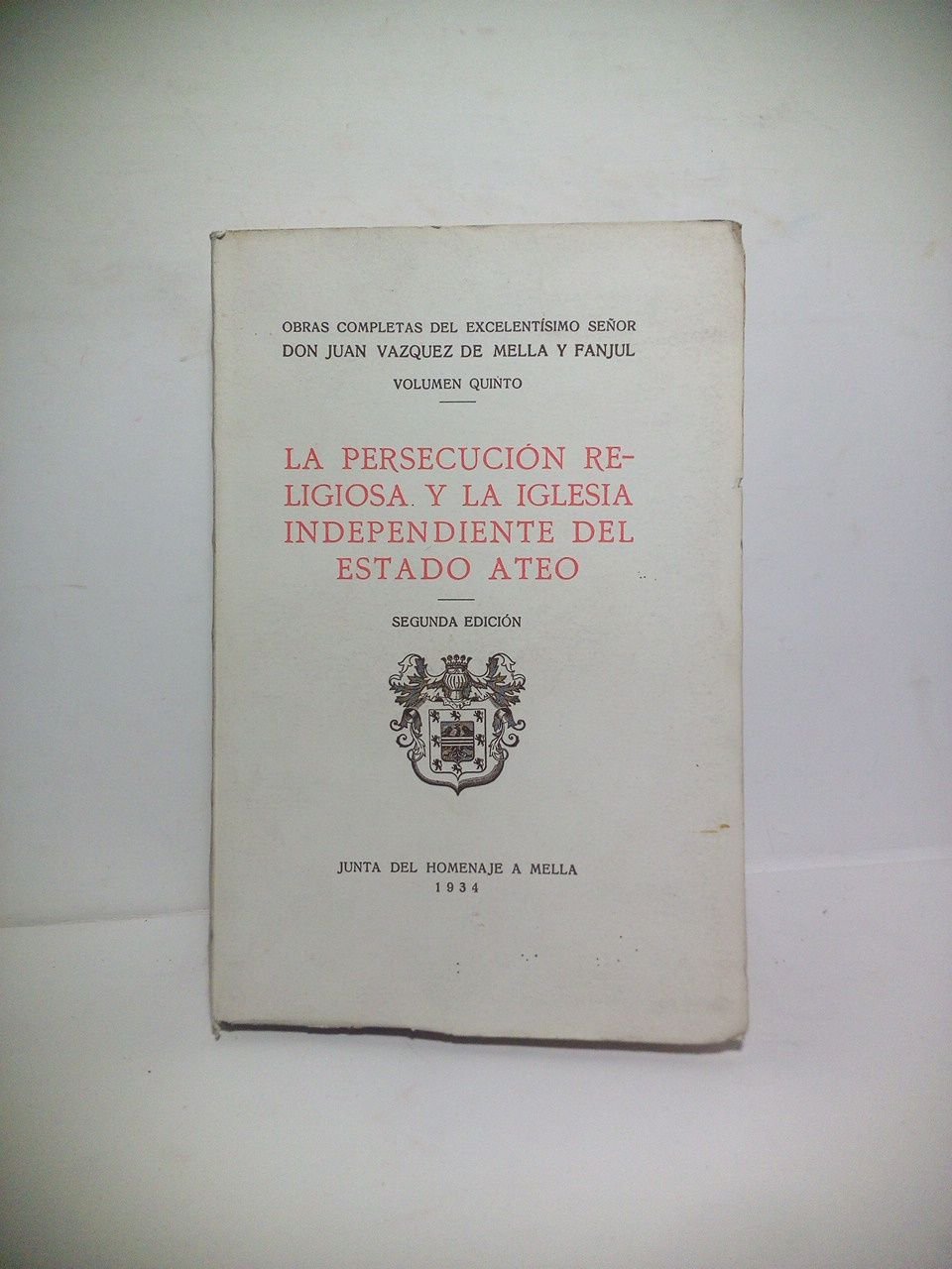 2ª Ed.- Madrid: Junta del Homenaje a Mella, 1934.- XXVII,361 p., [3 h.]; 8º mayor (19,2 x 13 cm); Intonso; Cubiertas en grueso papel de hilo.- (Obras Completas del Excmo. Sr. D. Juan Vázquez de Mella y Fanjul. Vol. V).* La portada y alguna hoja más con los sellos tampón de una antigua biblioteca. Por lo demás en excelente estado. CARLISMO