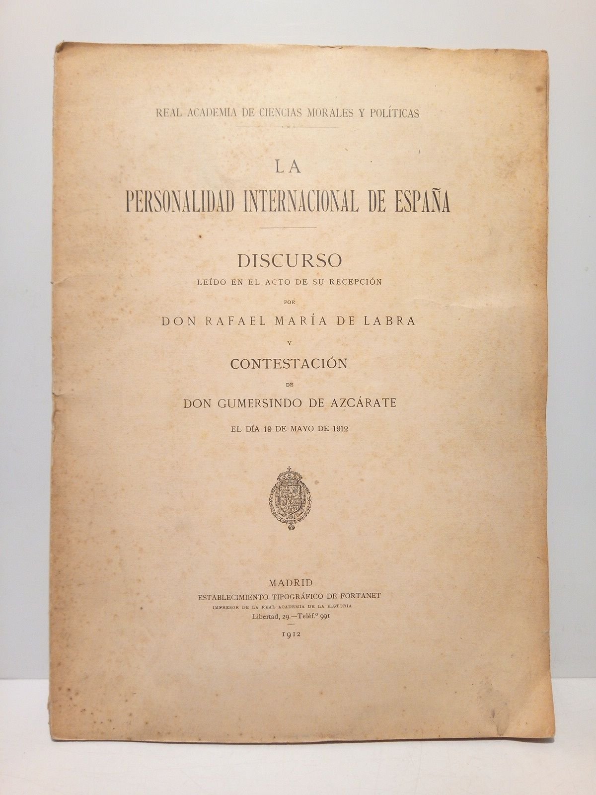 La Personalidad Internacional de España. (Discurso de ingreso en la R. A. de Ciencias Morales y Políticas. CONTESTA: Gumersindo de Azcárate, el día 19 de Mayo de 1912)