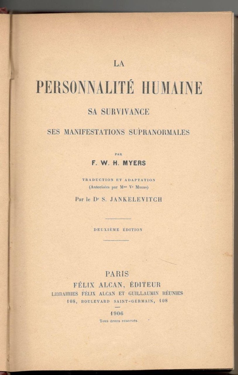 La personnalité humaine. Sa survivance. Ses manifestations supranormales. Deuxième édition