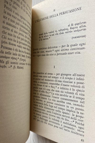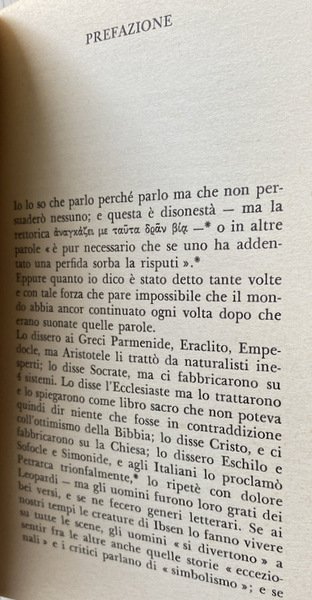 Soggetti: Filosofia, Saggi filosofici, Opere filosofiche, Critica, Gaetano Chiavacci, Anti-dialettica, Attualismo gentiliano, Persuasione, Retorica, Atto libero e creativo, Nichilismo, Negazione, Esistenza, Claudio La Rocca, Libri universitari, Umanistica, Leopardi, Schopenhauer, Comunicare, Comunicazione, Scrittura, Eschilo, Supplici, Sofocle, Elettra, Clitennestra, Citazioni greche, latine, tedesche, Presocratici, Socrate, Platone, Aristotele, Novecento, Tragico, Dicotomia, Verità, Insegnamento, Violenza, Ideologia, Perrella, La clinica delle dipendenze, Angoscia, Libelli, Joakim Ranke, Pro Q. Ligario, Guido Mazzoni, Brunetto Latini, Cicerone, Girolamo Vitelli, Filologia classica, Rhetorica, Gorgia, Parmenide, Metafisica, Sofistica, Appendici critiche, Eraclito, Philosophy, Empedocle, Sofocle, Euripide, Petrarca, I Trionfi, Modelli, Ibsen, Beethoven, Cristo, Ecclesiaste, Bibliografia, Riferimento, Studi letterali culturali, Tragedia greca, Lirica, Drammaturgia, Considerazioni inattuali, Greco antico, Parola, Dialettica, Piacere, Dolore, Solipsismo, Potenza, Atto, Chiesa, Bibbia, Verità, Libertà, Arangio-Ruiz, Diels, Mullach, Tolstoj, Illusione, Vita, Sapere, Conoscenza, Assoluto, Lavoro, Proprietà, Libri Vintage fuori catalogo, Classici, Collezionismo, Opere postume, Philosophical essays, Philosophical works, Criticism, Gaetano Chiavacci, Anti-dialectic, Gentile actualism, Persuasion, Rhetoric, Free and creative act, Nihilism, Denial, Existence, University books, Humanities, Communicate, Communication, Writing, Aeschylus, Suppliants, Sophocles, Electra, Clytemnestra, Greek, Latin, German quotes, Pre-Socratics, Socrates, Plato, Aristotle, Twentieth century, Tragic, Dichotomy, Truth, Teaching, Violence, Ideology, The addiction clinic, Anguish, Libelli, Cicero, Classical Philology, Gorgias , Parmenides, Metaphysics, Sophistry, Critical Appendices, Heraclitus, Empedocles, Sophocles, Euripides, Petrarch, Models, Christ, Ecclesiastes, Bibliography, Reference, Cultural literal studies, Greek tragedy, Lyrics, Dramaturgy, Outdated considerations, Ancient Greek, Speech, Dialectic, Pleasure, Pain, Solipsism, Power, Act, Church, Bible, Truth, Freedom, Tolstoy, Illusion, Life, Knowledge, Knowledge, Absolute, Work, Property, Books out of print, Classics, Collectables, Posthumous works