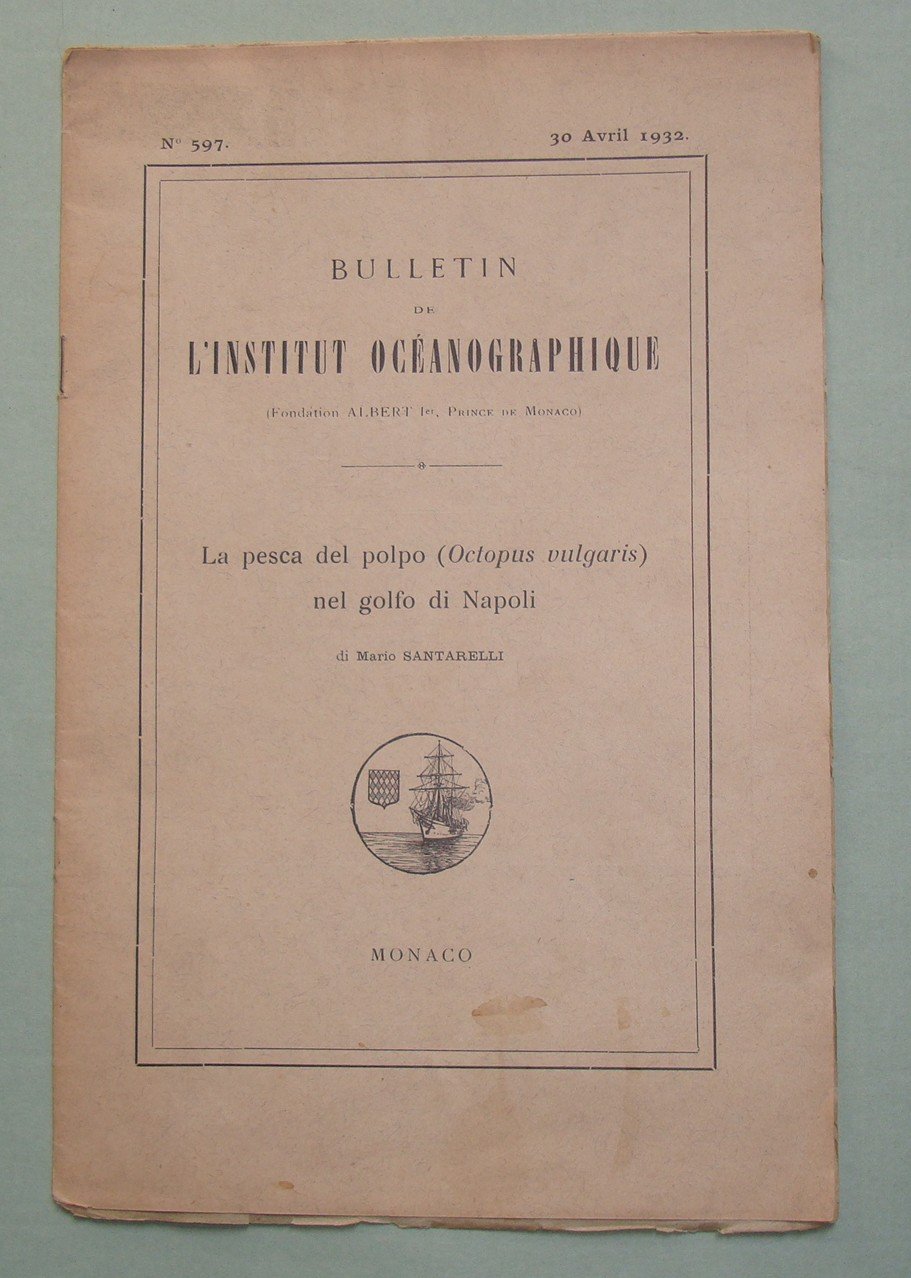 Monaco, 1932. N.597 del Bulletin de l'Institute Océanographique 30 avril 1932. In 8vo; pp.6. Cop.edit.