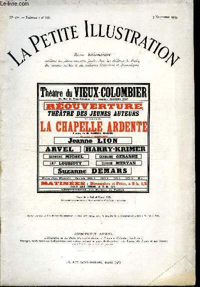 La petite illustration - nouvelle série n° 263 - théatre n° 151 - La chapelle ardente, pièce en trois actes par Gabriel Marcel, représentée pour la première fois le 25 septembre 1925, par le théatre des jeunes auteurs, sur la scène du vieux colombier