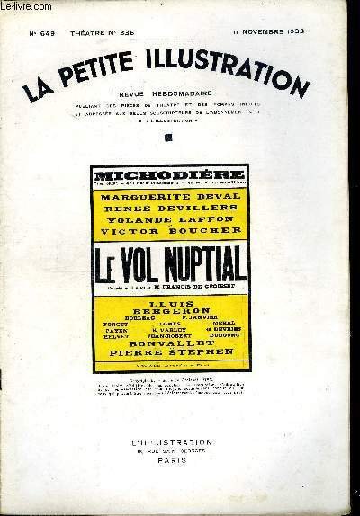 La petite illustration - nouvelle série n° 649 - théatre n° 336 - Le vol nuptial par Francis de Croisset, représentée pour la première fois le 1er avril 1933 au théatre de la michodière