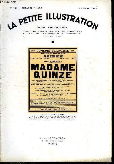 La petite illustration - nouvelle série n° 721 - théatre n° 368 - Madame quinze, pièce en trois actes et dix tableaux par Jean Sarment, représenté pour la première fois le 20 février 1935 sur la scène de la comédie française